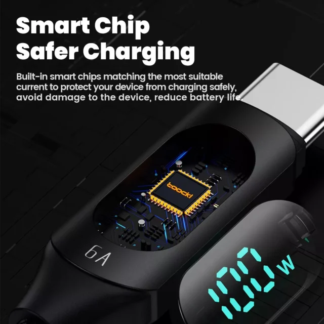 Upgrade your charging experience with this high-performance USB Type-C cable designed for today’s most demanding devices. With up to 100W fast charging capacity, this cable delivers the speed and reliability you need to keep your phone, tablet, or laptop powered up in no time. The built-in LED digital display shows real-time charging speed, so you always know exactly how much power is flowing into your device.