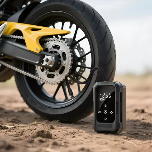 The digital display provides accurate real-time pressure readings, allowing you to monitor and control the inflation process with precision. Featuring an automatic shut-off function, this tire inflator will stop inflating when it reaches your desired pressure, ensuring safety and accuracy. Whether you’re inflating your car, motorcycle, or bike tires, this versatile air pump has you covered, all within a sleek, lightweight design.