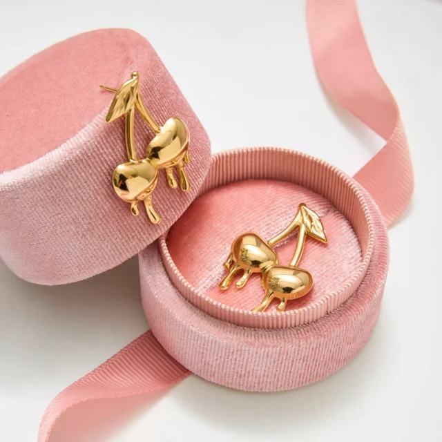 18K Gold Plated Liquid Melted Cherry Earrings – Romantic Women’s Jewelry