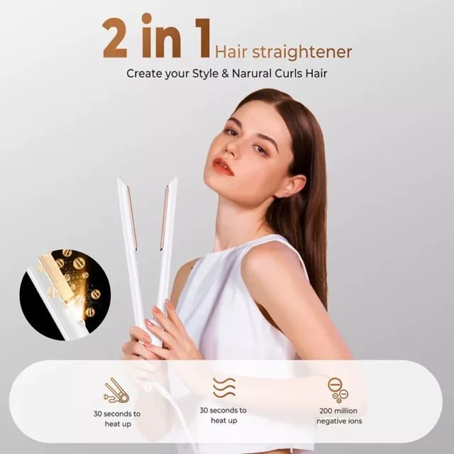 2-in-1 Hair Straightener & Curler with Adjustable Temperature & Fast Heating