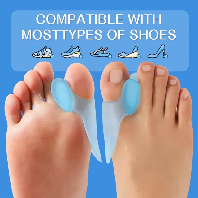 Perfect for daily wear or during rest, this product is best used by those experiencing discomfort from bunions, toe overlap, or hallux valgus. Use it during your morning routine, at work, or even while relaxing at home. Simply slide one separator between your big toe and second toe – and feel the difference as it gently eases tension and supports proper alignment.
