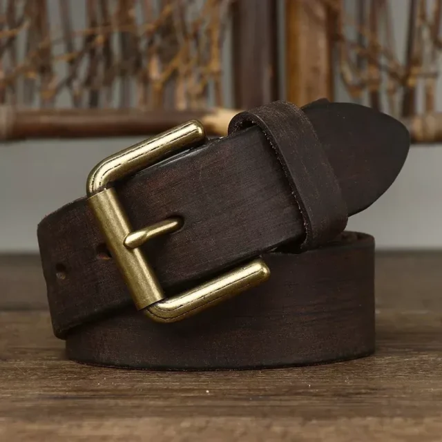 3.8CM Pure Cowhide Leather Belt for Men – Vintage Style