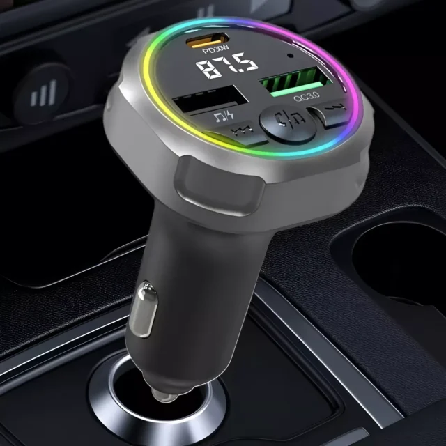 30W PD QC3.0 Car Adapter FM Transmitter with 7-Color LED Light & Fast Charging