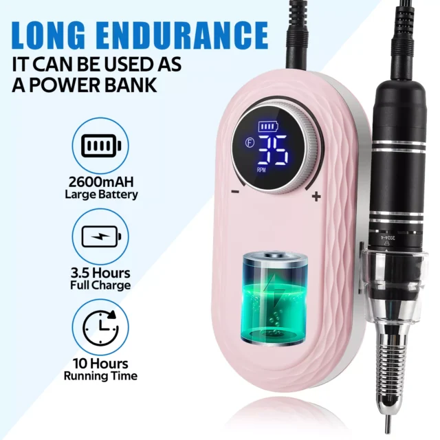 Whether you’re buffing calluses, shaping nails, or removing gel polish, this tool handles it all with ease. And thanks to the built-in 2600mAh battery, you can enjoy up to 10 hours of cordless use on a single charge.