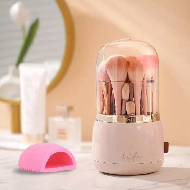 Keep your makeup and beauty tools neatly organized with the 360° Rotating Makeup Brush Holder & Lipstick Organizer. This sleek and functional cosmetic storage box is designed to streamline your routine and bring a touch of elegance to your vanity. Whether you’re a beauty enthusiast or a professional makeup artist, this organizer is the perfect solution to keep everything in its place. With a rotating design and plenty of storage, you can easily access your makeup brushes, lipsticks, pencils, and other beauty essentials without any hassle.