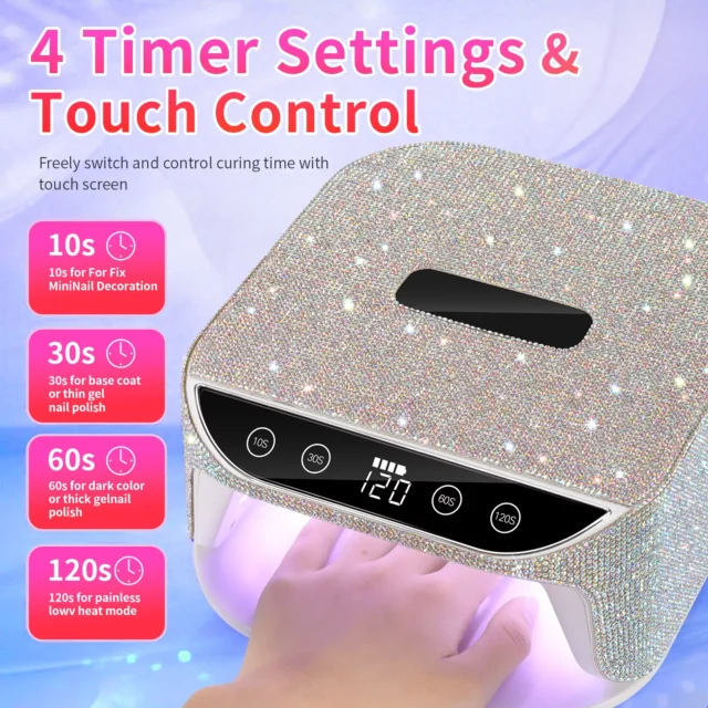 This nail dryer is ideal for use whenever you want to quickly cure your gel polish, whether you’re doing a quick manicure at home or preparing for a professional nail art session. It’s perfect for all types of gel nail polish, including base coats, top coats, and even glitter or sculpting gels.