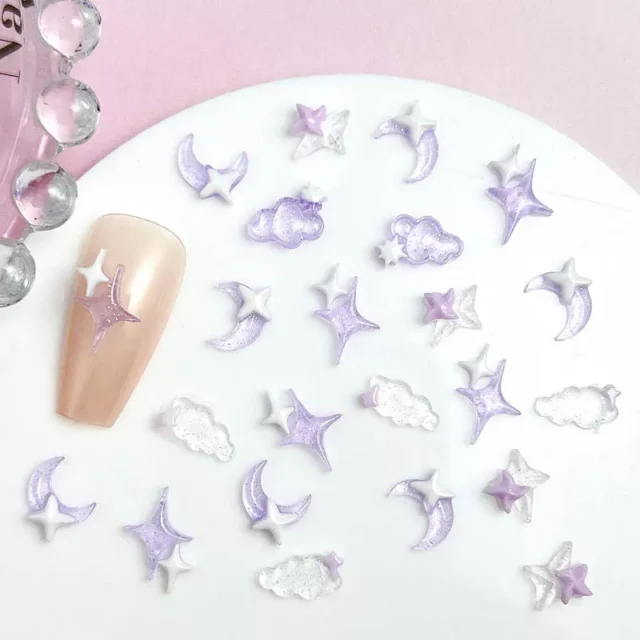 • Unique Designs: Featuring an assortment of moon, cloud, and sparkling four-pointed star shapes, these nail charms bring an enchanting touch to your nails.