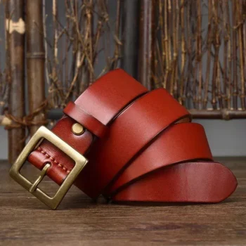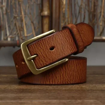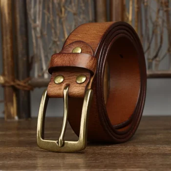 High-Quality Cowhide Leather Men’s Belt – Stylish Brass Buckle