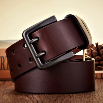 Men’s Genuine Leather Double Pin Buckle Casual Belt