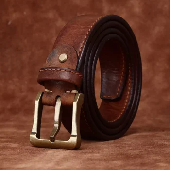 Men’s Genuine Leather Jeans Belt with Retro Copper Buckle