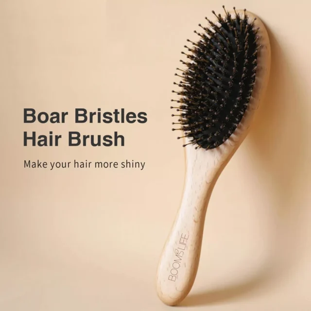 The boar bristles distribute your scalp’s natural oils evenly through your strands, reducing frizz, adding natural shine, and promoting healthier hair over time. The longer nylon pins glide easily through thick or tangled hair, helping to loosen knots without pulling or breakage. Plus, the wooden base feels great in your hand, giving you better control during styling or everyday brushing.