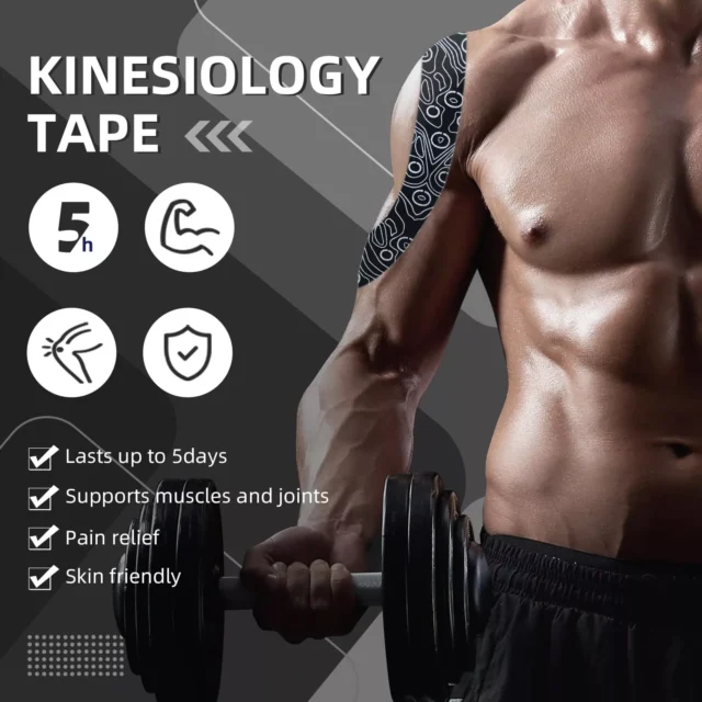 Whether you’re recovering from injury, looking to reduce muscle fatigue, or simply preventing strain during workouts, this kinesiology tape delivers long-lasting, all-day wear — through sweat, movement, and high-impact activity.