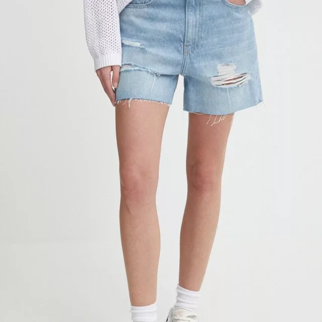 The worn-out effect on these shorts gives them a laid-back, distressed style that complements the modern woman’s wardrobe. The blue color is versatile, pairing effortlessly with your favorite tops for a fresh and easy look. With a zip and button fastening, these shorts offer a secure fit, while the front and back pockets provide convenient storage for your essentials.