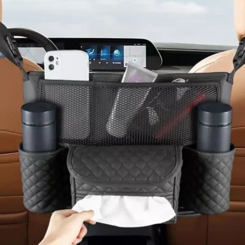 Universal Leather Car Seat Organizer with Cup and Handbag Holder