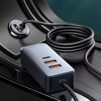 120W Multi-Port Fast Car Charger with USB & Type-C Ports + Extension Cord