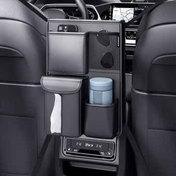 2-in-1 Car Trash Can & Tissue Box with Cup Holder and Backseat Storage