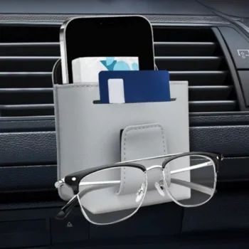 Car Air Vent Storage Bag Leather Organizer with Sunglasses & Phone Holder
