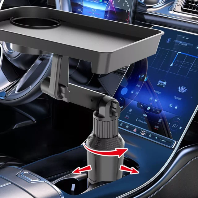• Secure Multi-Direction Rotation – The adjustable base and two-way rotation ensure this tray fits snugly into multiple cup holder sizes, providing a wobble-free experience even on bumpy roads.