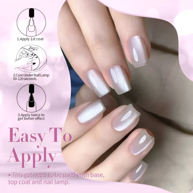 This polish is best used when you want to stand out—date nights, celebrations, photoshoots, or just when you’re in the mood for something dazzling. Apply after prepping your nails, use a base coat, apply the polish in thin layers, and activate the magnetic effect while wet. Seal with a top coat and cure with UV or LED light for a lasting, glossy finish.