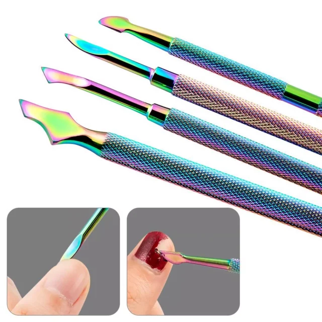 Experience the ultimate in nail care with our Chameleon Rainbow Dual-Ended Stainless Steel Cuticle Pusher. This vibrant, multi-functional tool is designed to give you salon-quality results in the comfort of your own home. Its stunning rainbow finish not only makes it a stylish addition to your nail kit but also ensures durability and efficiency.