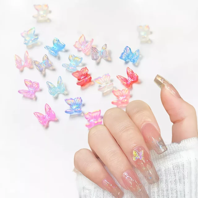 What sets these butterfly nail charms apart is their stunning aurora effect. The various stunning colors are designed to reflect light in a way that creates a dazzling, rainbow-like shimmer. This unique feature makes them a standout addition to any manicure. Additionally, the high-quality resin material ensures they maintain their shape and color, providing you with long-lasting beauty.