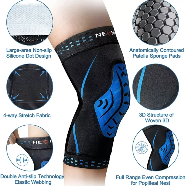 • Anti-Slip Design: Medical-grade silicone dots and elastic webbing ensure the knee sleeve stays securely in place, even during intense workouts or sports.