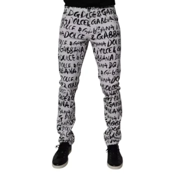 Dolce & Gabbana Men’s Skinny Cotton Jeans with Logo Print – White/Black
