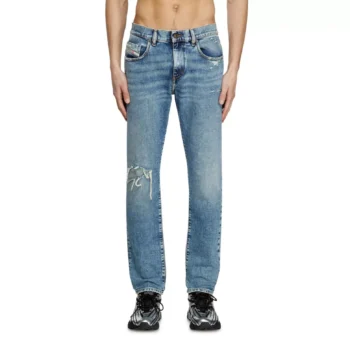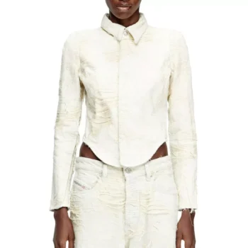 Diesel Denim Cotton Shirt with Hidden Closure and Distressed Jacquard Finish