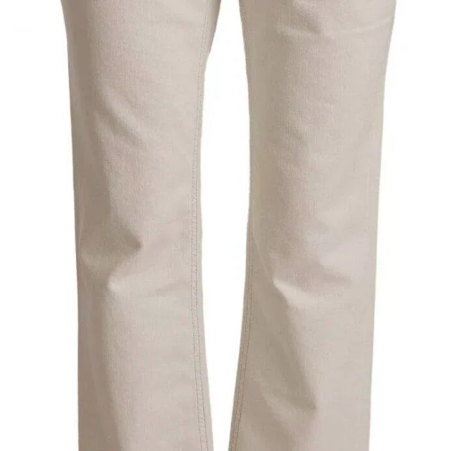 Made in Italy from a high-quality cotton stretch blend (88% cotton, 12% elastane), these jeans provide a perfect balance of comfort and flexibility. The mid-waist design offers a flattering fit, while the zipper closure ensures a secure and sleek look. The off-white color is fresh, versatile, and easy to pair with virtually any top or accessory in your wardrobe. Subtle logo details add an extra touch of luxury, making these jeans more than just a fashion choice, but a statement of refined taste.