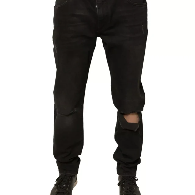Whether you’re heading out for a casual night or just want to upgrade your daily wardrobe, these jeans are your go-to choice. Their versatile black shade makes them easy to pair with anything, from a crisp white shirt to your favorite graphic tee. The ripped details add personality without going over the top, while the classic zipper and button closure, paired with subtle logo accents, underline their high-end craftsmanship.