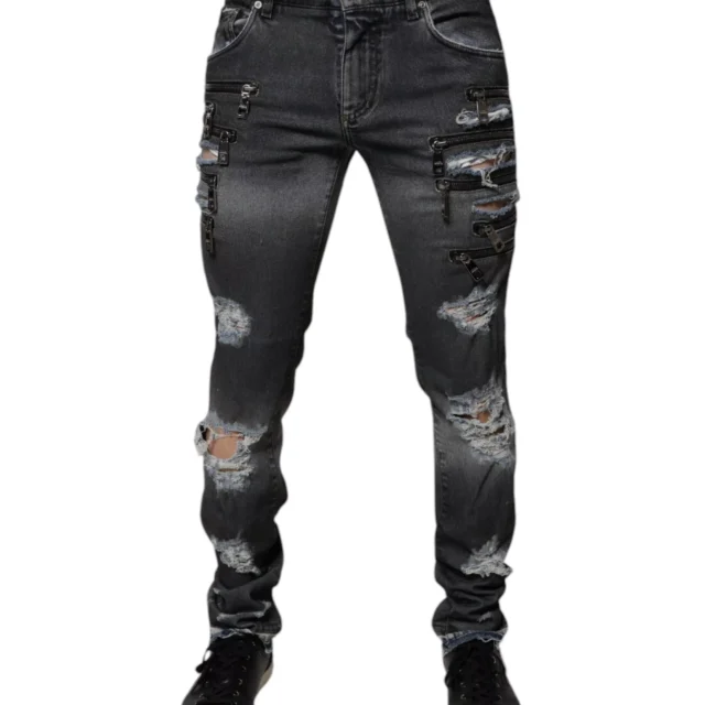 Dolce & Gabbana Dark Grey Skinny Fit Tattered Jeans for Men – 100% Cotton