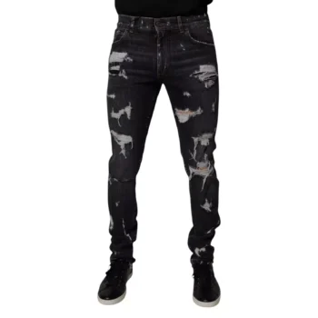 Dolce & Gabbana Men’s Black Skinny Tattered Jeans – Italian Designer Denim