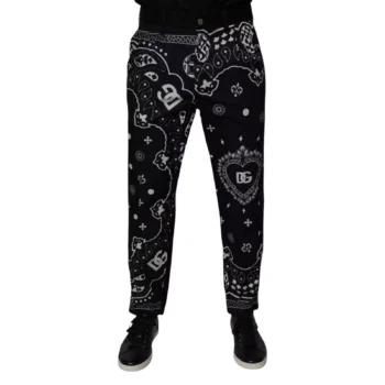 Dolce & Gabbana Men’s Black Loose Fit Denim Jeans with Print – 100% Cotton