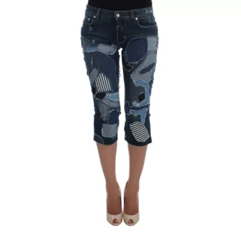 Dolce & Gabbana Blue Denim Patchwork 3/4 Stretch Jean Shorts for Women