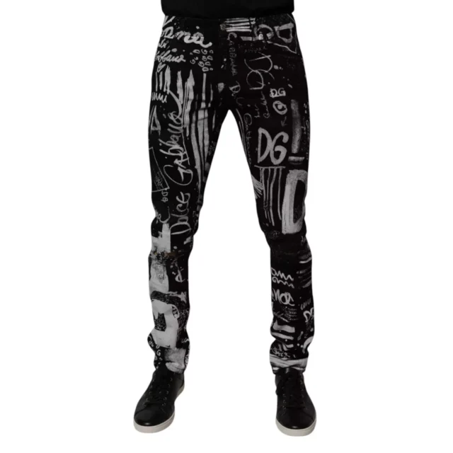 Dolce & Gabbana Men’s Black Logo Skinny Fit Cotton Jeans – Made in Italy