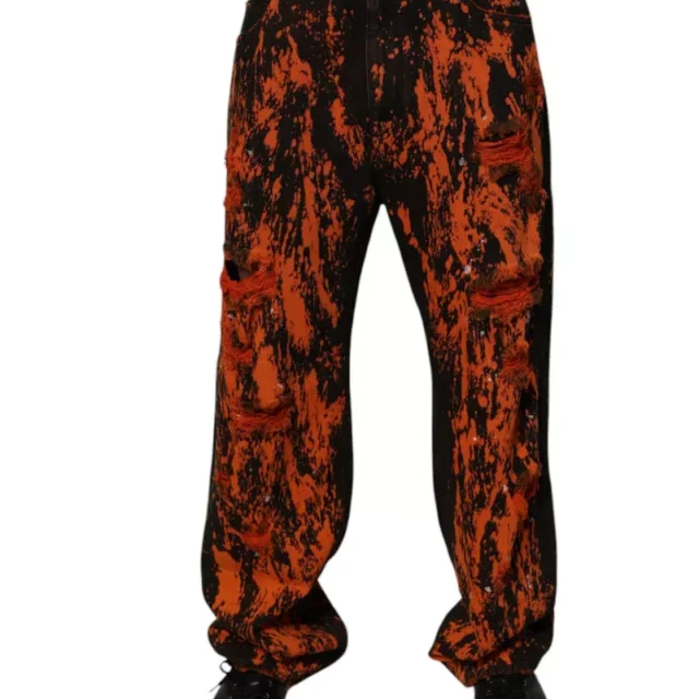 Step into high-fashion confidence with these Dolce & Gabbana Men’s Tie-Dye Straight Cotton Jeans – a true statement piece for the modern man. Designed in Italy with the brand’s unmistakable flair, these jeans combine edgy street style with premium craftsmanship. The bold black and red tie-dye design adds a striking visual twist to the classic straight-leg fit, giving you an effortlessly cool look that commands attention wherever you go.