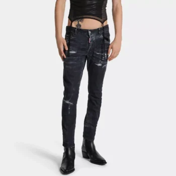 Dsquared2 Skater Jeans in Black Stretch Denim with Ripped Details