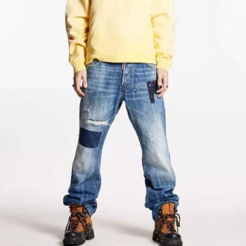 Dsquared2 Regular Fit Jeans with Patches and Paint Splashes