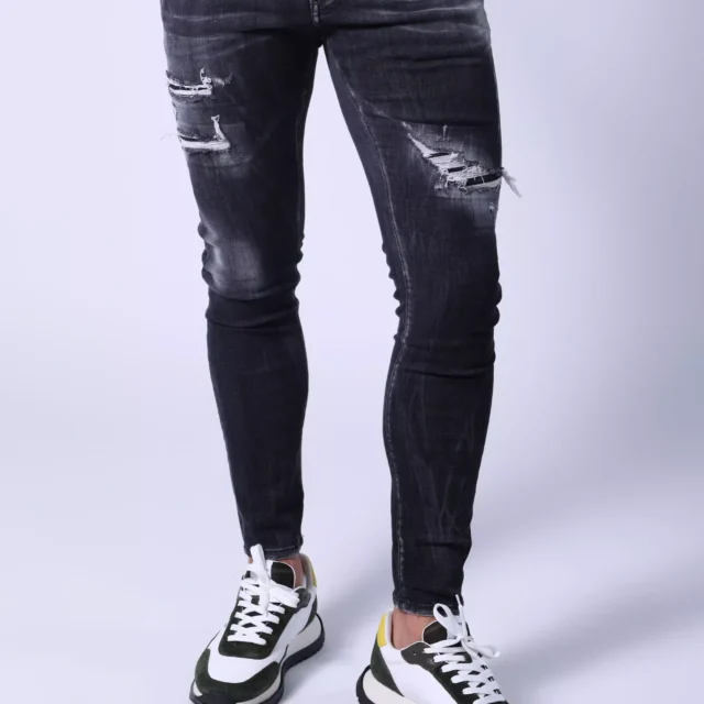 These five-pocket skater jeans are expertly designed for both fashion and function. The button fly closure ensures a secure fit, while the black leather logo patch on the back adds a distinctive designer touch. Cut with a slim, slightly tapered fit, they offer just the right amount of stretch to move with you all day without losing their shape. The classic black color with a faded finish makes them incredibly versatile, perfect for pairing with everything from graphic tees to tailored jackets.