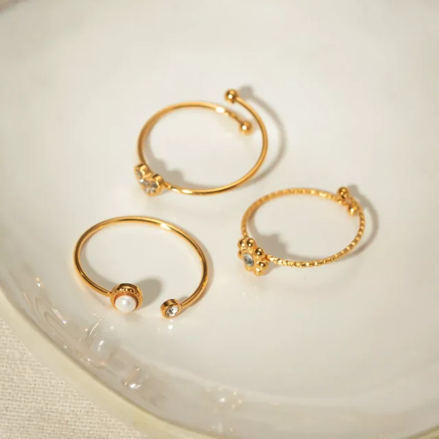 Crafted from high-quality stainless steel and plated with 18K gold, these rings offer both durability and luxurious shine. The advanced PVD gold plating ensures that the color lasts for years without fading or tarnishing, allowing you to enjoy your jewelry worry-free. Each ring is designed to be waterproof, meaning you can wear it with confidence in any situation—be it a sunny beach day or a snowy winter evening.