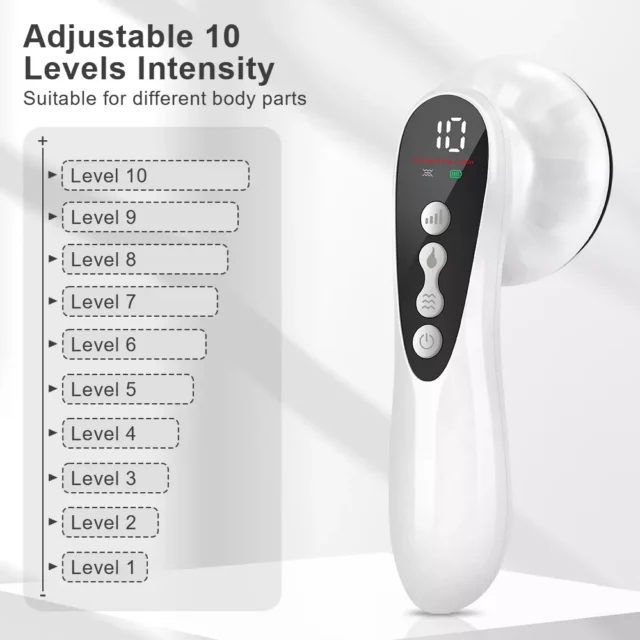 Designed for convenience and versatility, the device features three targeted modes—Wrinkle Reduction, Fat Burning, and Skin Lifting—each with 10 intensity levels for customized treatment. Use it after a shower, before bed, or while relaxing. Just pair it with your favorite gel or lotion to enhance the results.