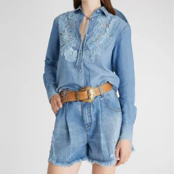 Ermanno Scervino Women’s Floral Lace Embroidered Denim Shirt