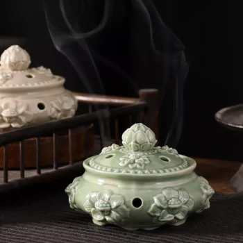 Elegant Ceramic Incense Burner with Lid