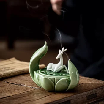 Porcelain Deer Aromatherapy Burner with Lotus Base – Ceramic Incense Holder