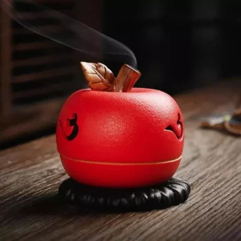 Ceramic Red Fruit Design Incense Burner – Sandalwood Aroma Holder for Living Room Decor