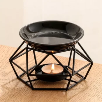 Black Ceramic Essential Oil Burner with Iron Rack