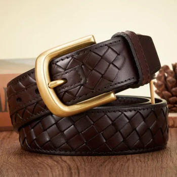 Men’s Genuine Leather Braided Belt with Copper Buckle