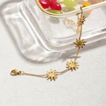 18K Gold Color Plated Spiral Sun Chain Bracelet – Elegant Women’s Jewelry