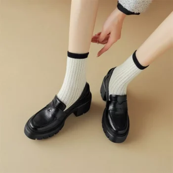 Women’s Genuine Leather Chunky Heel Platform Loafers