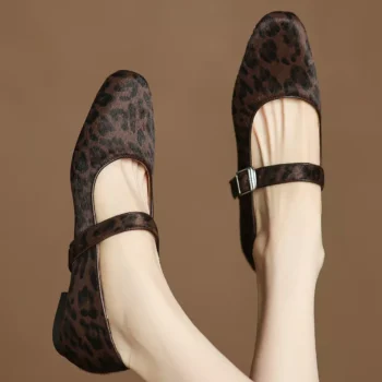 Leopard Horsehair Mary Jane Flats with Metal Buckle – Women’s Round Toe Shoes